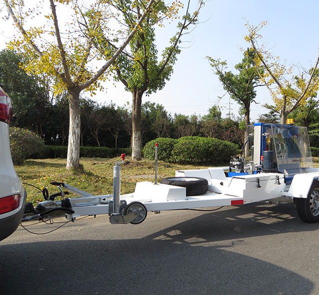 | 3.3 | Parameter | 1. working type: trailer type 2. hammer lifting: hydraulic type 3. power supply: traction device power, DC 12V 4. deflection sensor: 9pcs 5. min. distance to earth: >20cm 6. deflection range: -2500μm~+2500μm 7. deflection measuring accuracy: better than 2% 8. deflection resolution: 0.1μm 9. capacity: 0~250kN 10. loading accuracy: better than 2% 11. loading plate: D300mm or D450mm (4-side profile) 12. temp. Range: -50℃~100 ℃ 13. temp. Measuring accuracy: 0.5% 14. temp. Measuring resolution: 0.1℃ 15. distance sensor accuracy: 0.1% 16. testing time for each point: 35s (3 hammer action) |